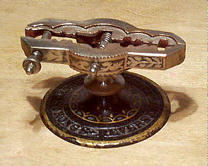 Imagine being an engraver, where attention to detail and keen eyesight made many a practioneer of that trade dispensable by the time they were in their mid-30's. The American Banknote Company, one of the leaders in 19th century engraving of checks, currency, postage stamps, etc. certainly would have found this little vise, patented in 1882, a suitable tool to produce some of their work.